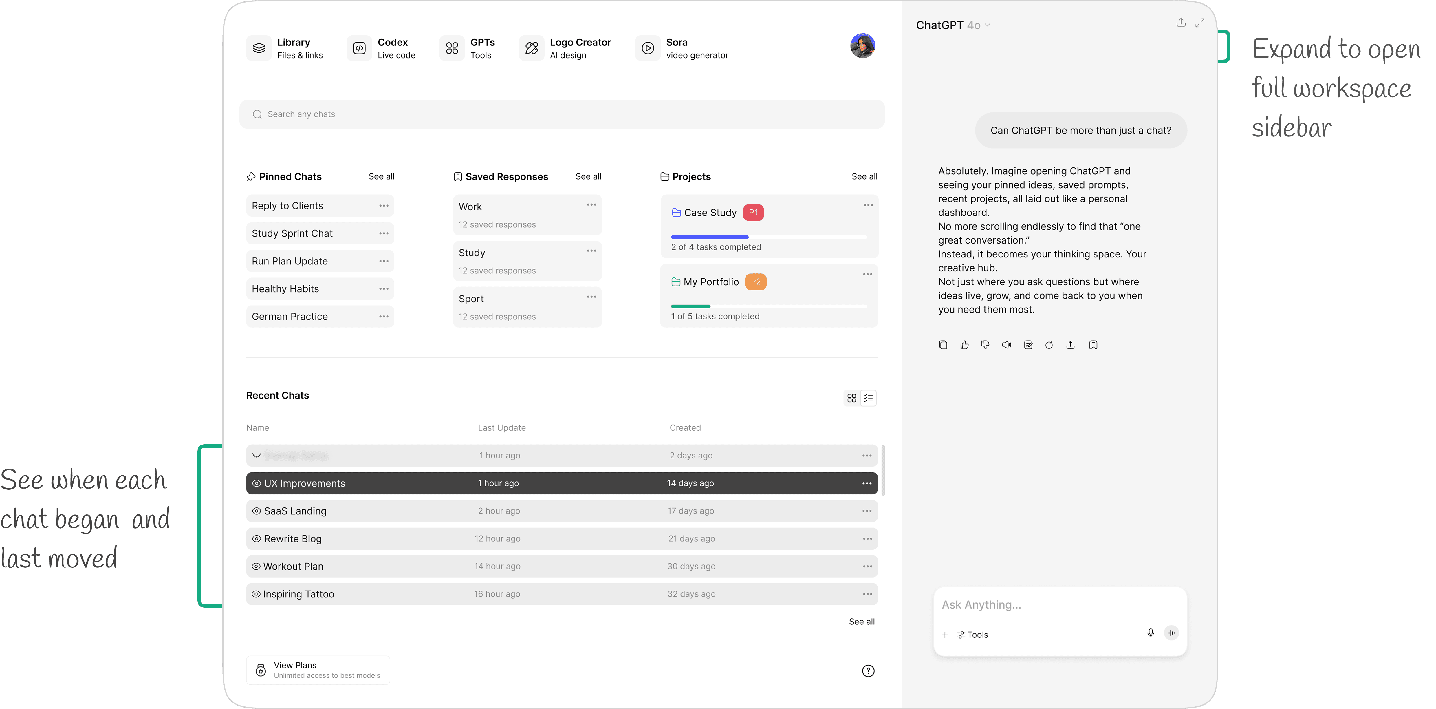 Improving Chat Management on ChatGPT through Workspace-Style Layout and Smart Navigation