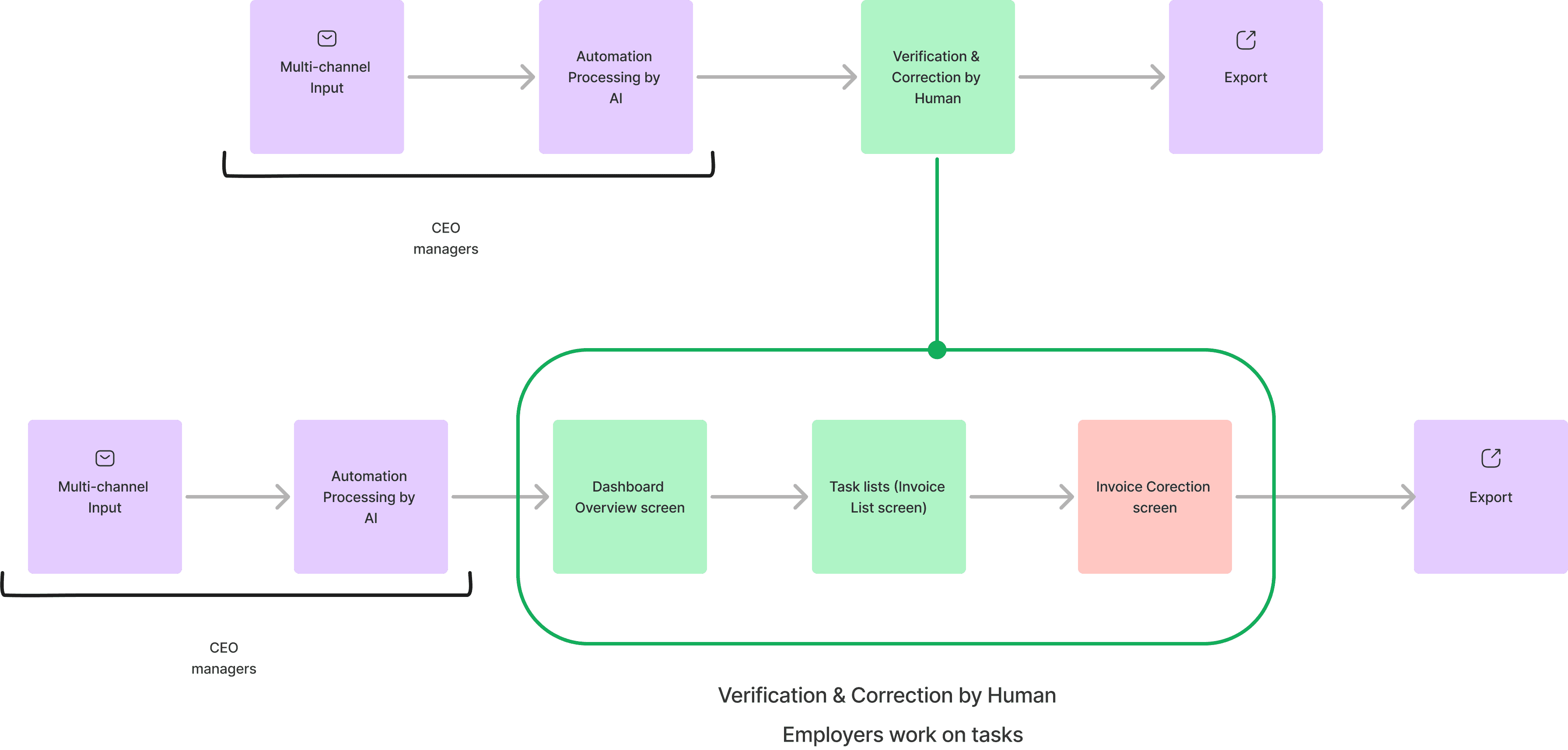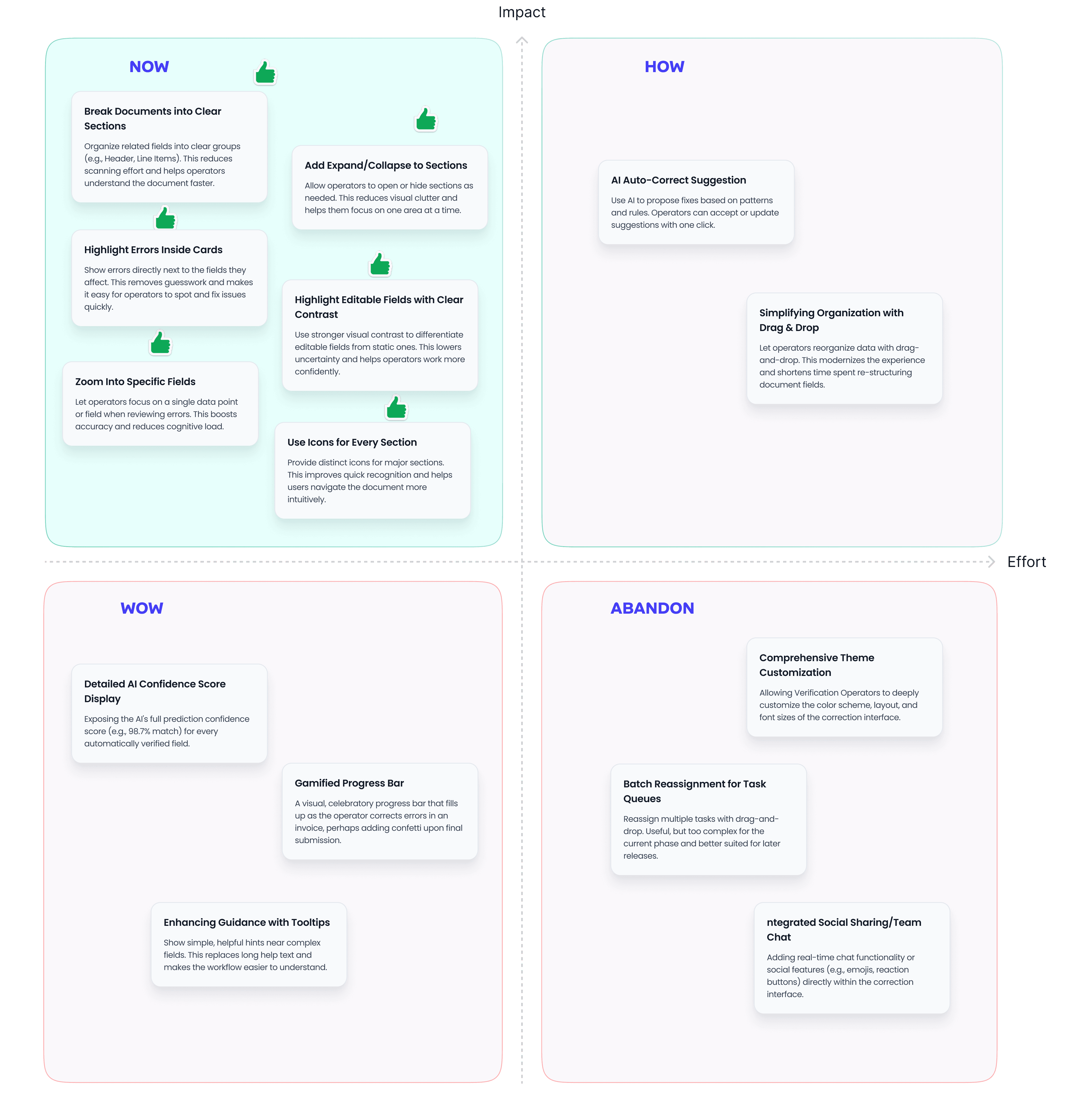 I redesigned the workflow to remove cognitive friction. With clearer, dynamic sections and strong visual guidance, the manual correction process became faster and more accurate, delivering a validated boost in operational efficiency.